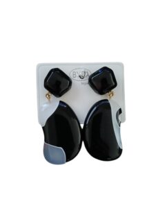 orecchino a perno argentato con strass e goccia in resina madreperlata.