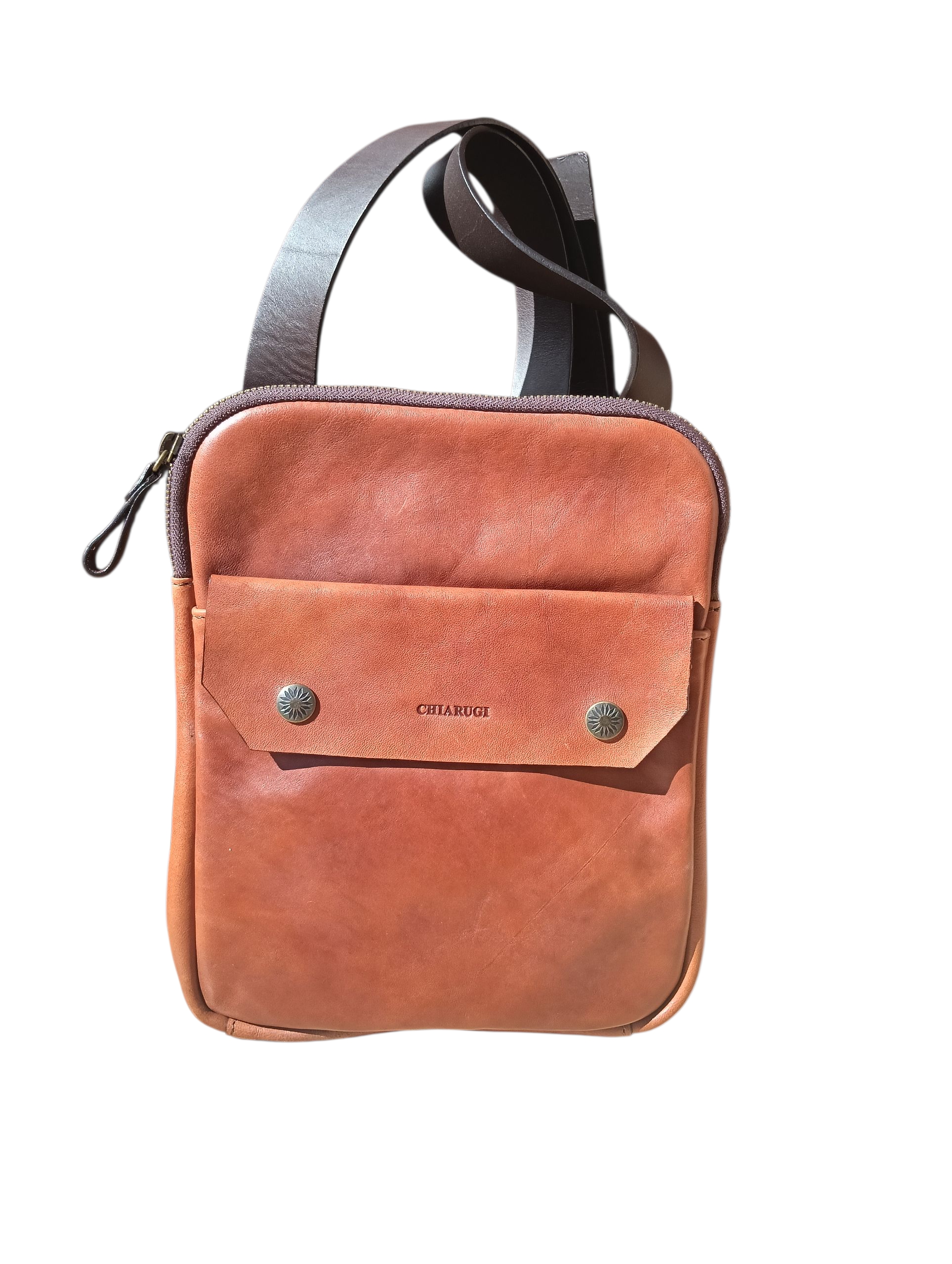CHIARUGU FIRENZE BORSELLO OLD TUSCANY UOMO CON TRACOLLA VERA PELLE COLOR CUOIO