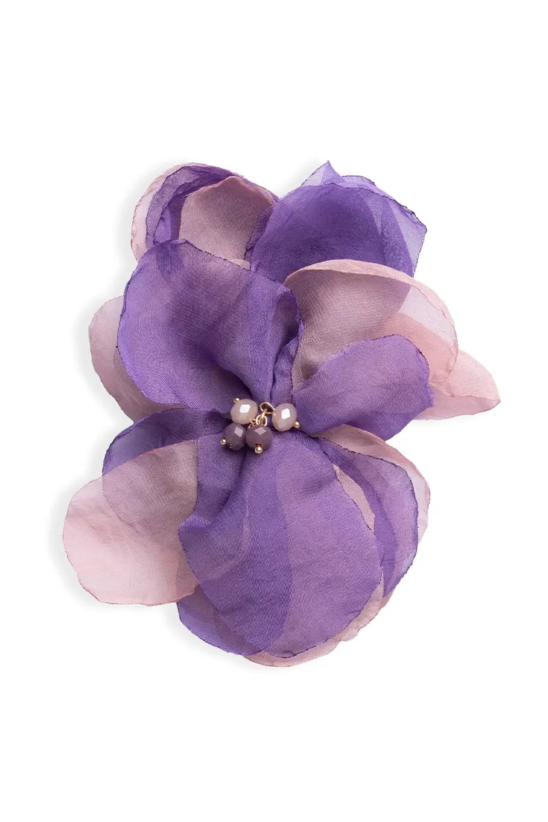 MYA ACCESSORIES | Spilla a forma di fiore in tessuto viola/beige